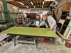 Nos ateliers suivent un processus de fabrication précis et rigoureux. Nous découpons le verre avec une précision millimétrique. Un traitement thermique renforce sa résistance. Les pieds métalliques sont façonnés et protégés contre la corrosion. Chaque composant est soigneusement ajusté pour garantir stabilité et sécurité.