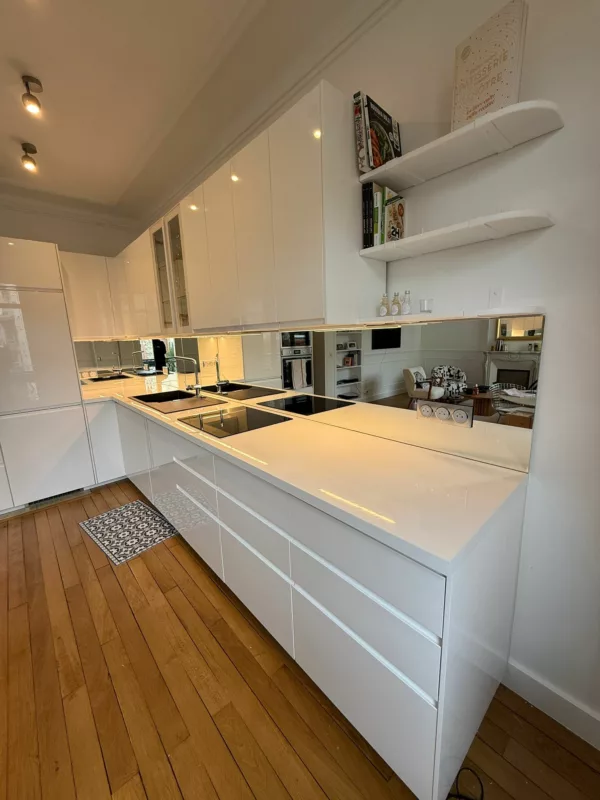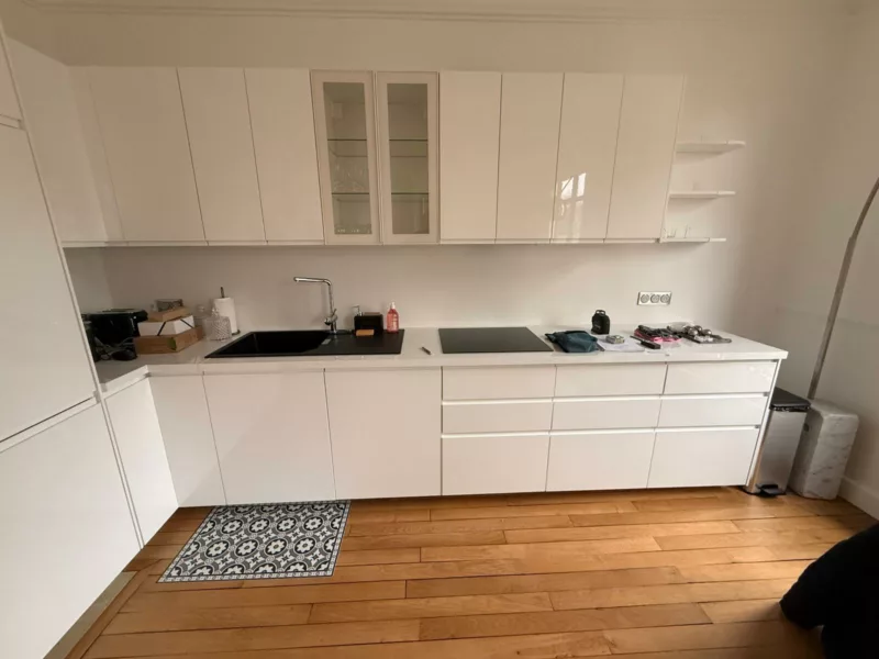 Le résultat est visible : une cuisine lumineuse, moderne, facile à entretenir, et qui gagne en espace visuel.